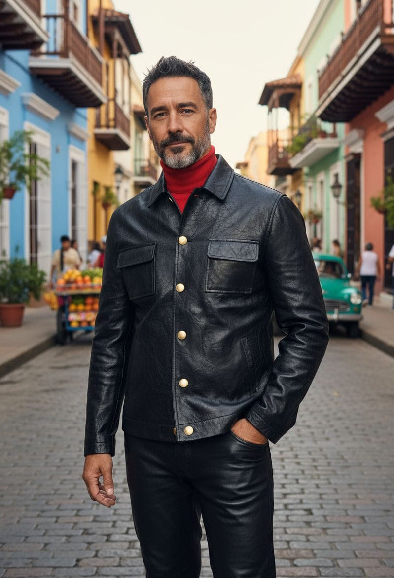 GIOVANNI TESTI Slim Faux Leather Casual Suit. Flair pants. Patch pockets with Flaps.
