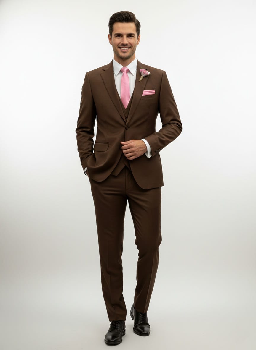 EFFETTI BY Giovanni Testi 3 Piece Suit, 2 Button, Notch Lapel with Pick Stitching, Side Vents, Matching pants with flex waist (stretchable).
